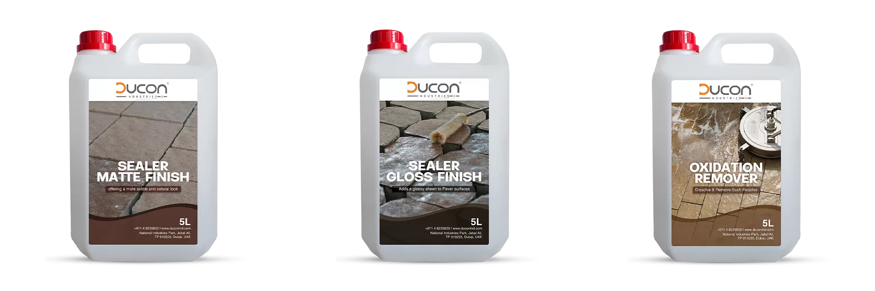 Ducon Sealer (Gloss Finish): Offers the same strong protection while enhancing the pavers’ colors with a rich, wet-look shine. Ideal for creating a dramatic, high-end effect.