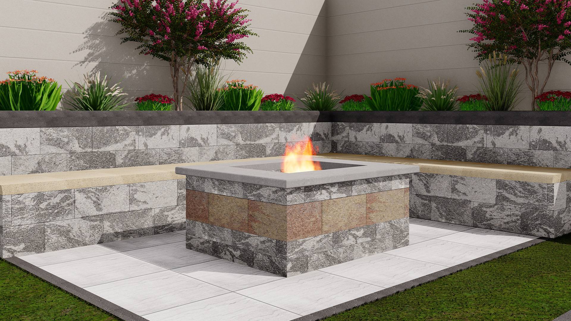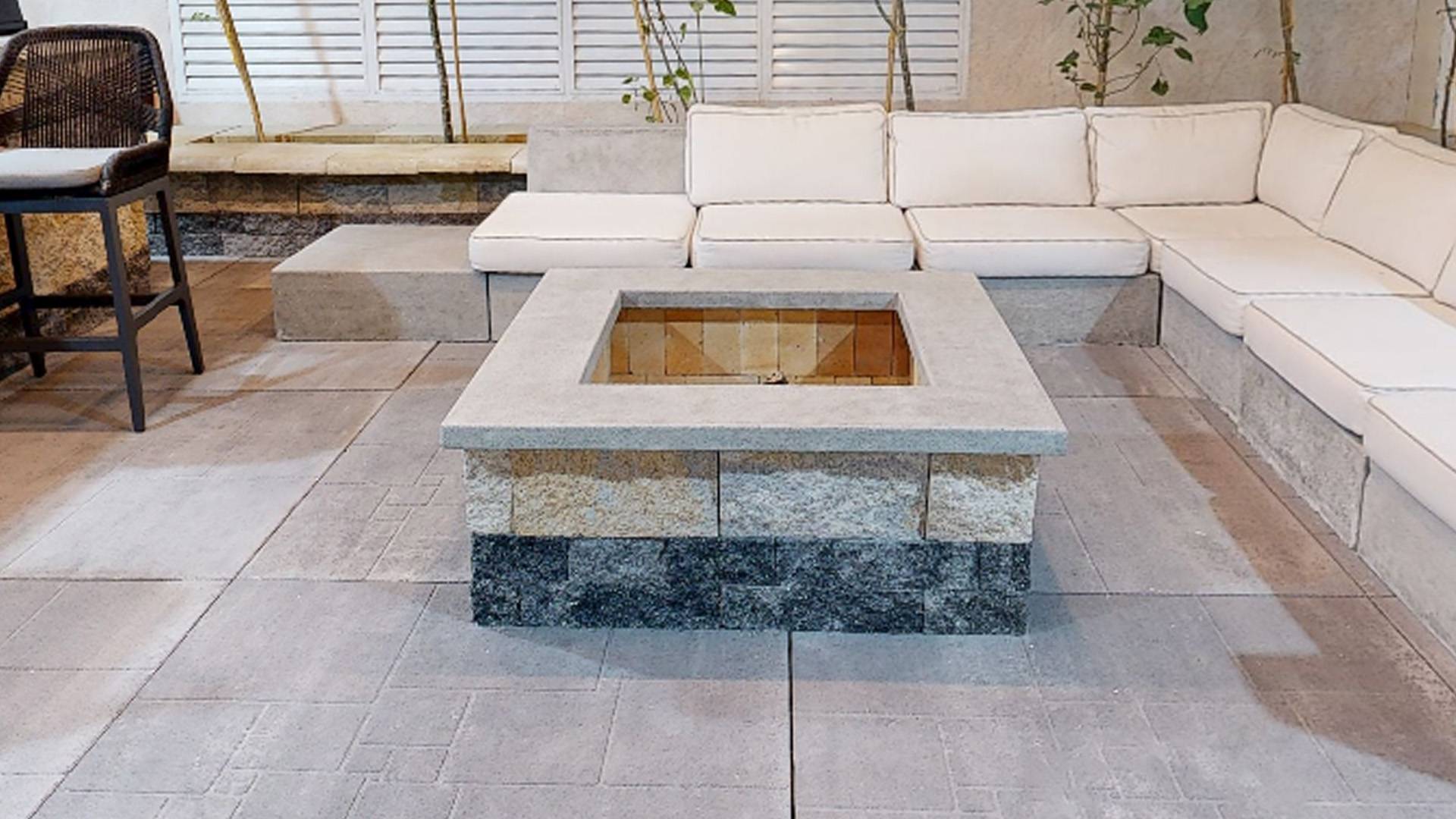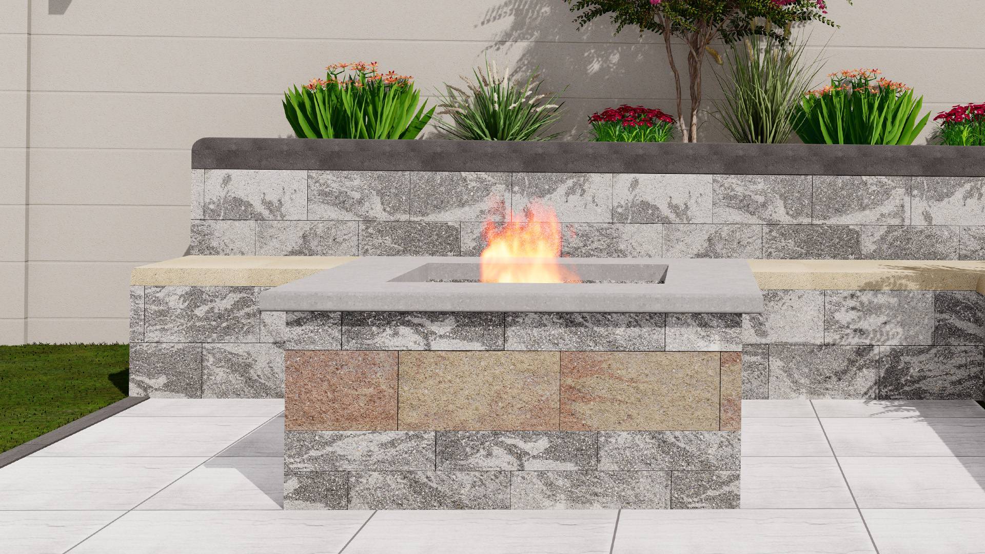 Enhance your outdoor space with our Square Firepit, designed for both style and durability. The top layer features a sleek concrete texture, while layers 1 & 2 are crafted using our Wall System Slate and Moka, adding a rich, earthy tone. Perfect for cozy gatherings and a modern outdoor aesthetic.